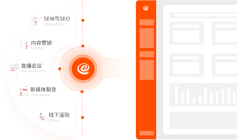 集成西安網(wǎng)站設(shè)計(jì)、西安網(wǎng)站制作、搜索引擎SEM、SEO、內(nèi)容營(yíng)銷(xiāo)、直播、新媒體裂變、線下活動(dòng)等營(yíng)銷(xiāo)工具,助力企業(yè)大數(shù)據(jù)獲客;