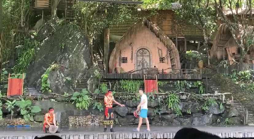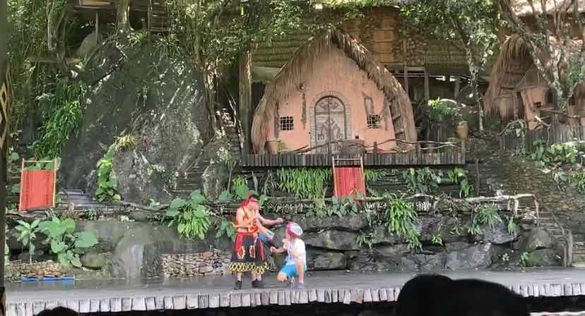 檳榔谷這個黎族山寨,四周是滿山遍野的檳榔,保留著原生態的熱帶景觀。在這里,他們盡情欣賞原著居民的民族風情、觀看高山火海表演、感受《檳榔?古韻》的實景演出、品嘗黎苗風味美食,好不自在。