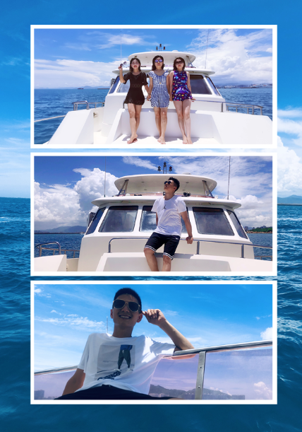 來到海邊,不玩海似乎說不過去。于是,我們的小伙伴穿上美美的衣服,包個游艇出海去玩耍。
