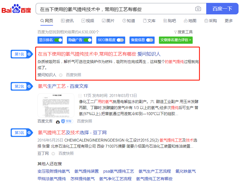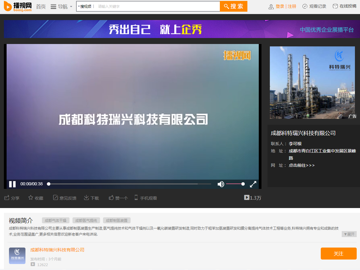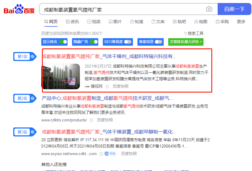投放1條視頻,百度效果次數6條,成都氫氣提純技術、成都氫氣提純、成都氣體干燥劑等詞均已在百度展現,讓潛在客戶能輕松實現對企業核心競爭優勢的全面了解。