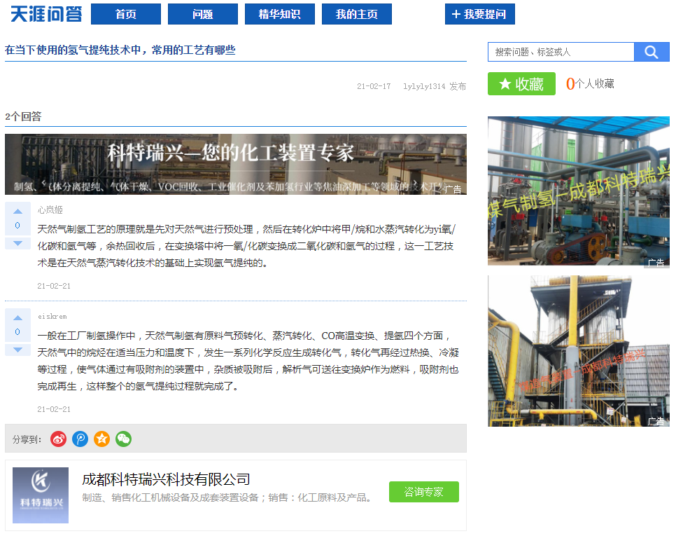 投放824條商盟,成都氯乙烯專用吸附劑、2000方甲裂制氫裝置、1.5萬方甲裂制氫、800方焦爐煤氣提氫、1.5萬方氫氣提純裝置、900方甲裂制氫、成都氧化鋁專用硅膠等關鍵詞都在吉斯特建材網、好優網、商機購、365資源網等平臺展現,大大提高了搜索引擎抓取收錄機會。
