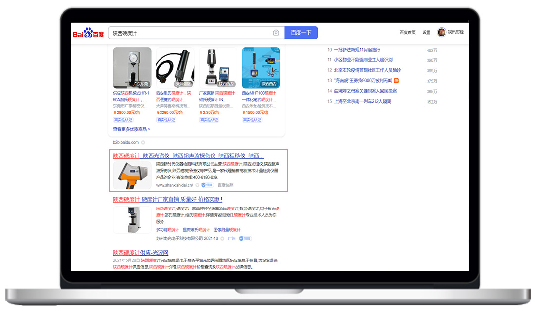 新時代關鍵詞:陜西硬度計、陜西光譜儀、陜西直讀硬度計、陜西石油硬度計、西安硬度計等,均在百度首頁展現(xiàn),準確鎖定有需求的客戶。