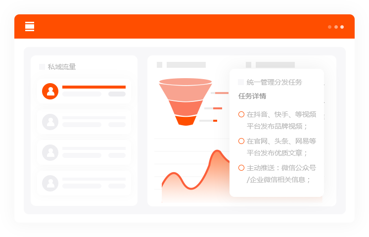 渠道數據互通,追蹤客戶來源,識別篩選畫像,評估各渠道效果,統一管理客戶檔案,建立企業客戶流量池,運營轉化提升。